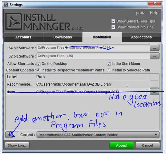 Could you give me (or can I find a clear step by step description) of the paths and the setup in Install amnager and how to get common access to content from both Poser and DS? This has been 2 days and I am more confused than when I started.