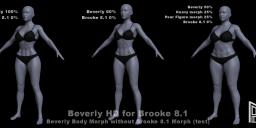 As some of you are demanding, here’s two test pictures about using Beverly shapes without the required Brooke 8.1 morphs. Beverly needs the same percentage of Brooke 8.1 morphs because Brooke 8.1 is the first layer of mass on which Beverly character has been designed. As you can see from these pictures Beverly Body with 0% of Brooke 8.1 Body morph is definitely an unnatural shape. Maybe you’ll still be able to use Beverly Head morph as a new head shape, but that’s not the Beverly face you are seeing in the promos.