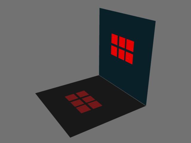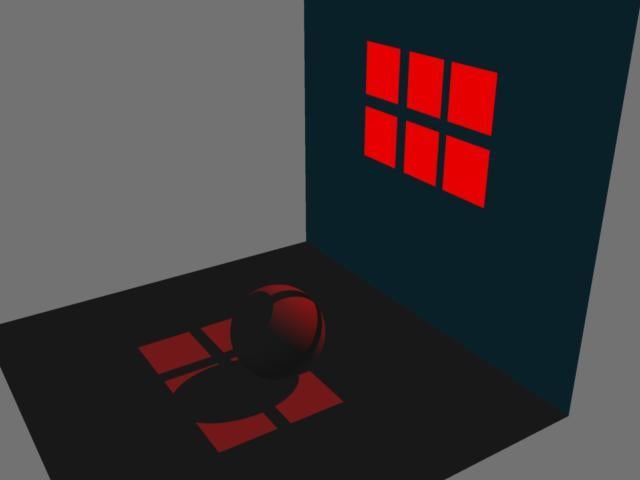 I just tried a quick set up. Window shader has red in the translucency channel. Just one Distant Light.