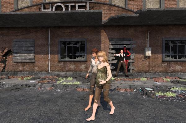 :) Also here is an updated render, which I have some questions about. As you can see here three of my figures have lost their skin and two of the models have lost there eye's leaving stark white glowing in it's place. I have had this happen before when I was playing with the surface of my models skin and spent a long time trying to figure out what went wrong, but this is the first time it has happened after spot renders that previously showed me all was applied properly. I have managed to fix this problem by re-applying the desired skin, or shader's and managed to correct it. But I'd really like to know what cause's this to happen so I might fix it more easily.