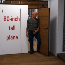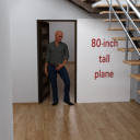 I ran into a problem setting up a scene with https://www.daz3d.com/modern-house-2 . The character's head did not quite clear the front door. Standard door size (in the US at least) is 80 inches, but it seems that this house used 80 inches as the door frame size instead. Attached is a picture of Christian 8 (nominal height 5'11") at the front door, with an 80-inch plane, and a similar interior shot.