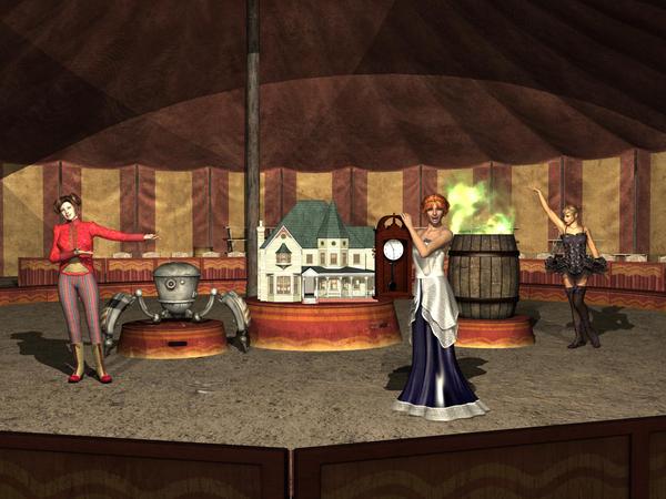 "Welcome to the Circus of Savings! Step right up and see what deals we have for you today. Perhaps you'd be interested in this quality clock handcrafted by ART Collaborations. Or maybe this Scuttlebot, created by master mechanic The AntFarm, is more to your liking. Or we have this lovely Victorian dollhouse, design by the highly acclaimed architect, Jack Tomalin. Or for you gamblers out there, we have this Mystery Barrel O' Fun, guaranteed to surprise and delight! Well, surprise anyway."