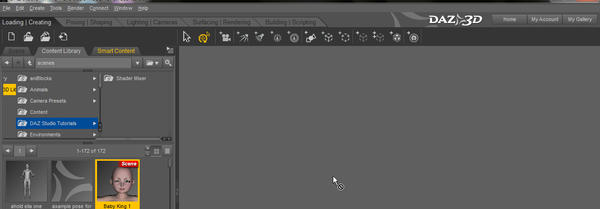 As of today I can't load scenes when the loading/creating tab is selected, but I can load scenes when the posing/shaping tab is selected. Also the loaded scene disappears when I re-select the loading tab. "Wa-happen?"