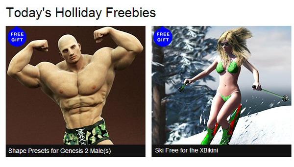 Enjoying the holiday freebies but disappointed I couldn't get to the genesis 2 male presets. I tried the link a number of times during the two days it was supposed to be available but all that ever came up was the ski bikini. Was there a mistake in the post?