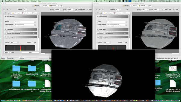 comparison of rendering output using "Luxus for LuxRender" , " Reality v2.5 for LuxRender" and HitF