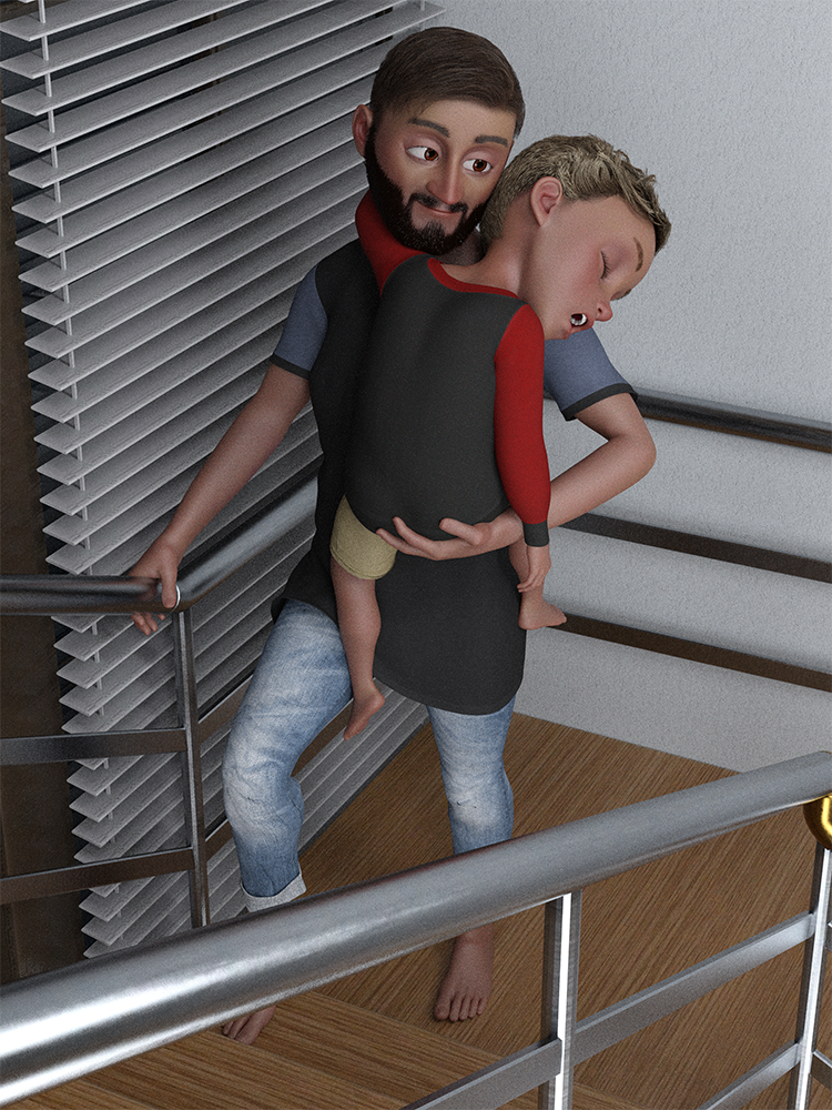 Here's the same scene, re-rendered at 750x1000 and downscaled from its original resolution (2700x3600) to the same dimensions. I have no idea what happened to the father's eyes in the re-render, but otherwise the two images are illustrative of the difference between the two approaches.
