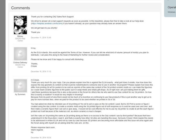 And...uhhhh, DAZ needs to get the hell on top of this and establish a reasonable and fair policy, and they need to do it fast! This "submit a ticket" attitude will be bad business and could make DAZ lose out on business opportunities galore!