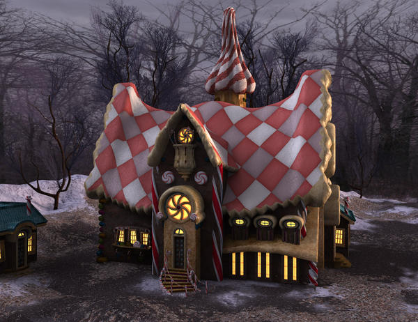 But wait...there's more. A large lollipop and a candy cane can serve as artificial trees. Or you can scale them down and use them as food for the aforementioned virtual Hansel and Gretel while they are dissolving into puddles of drool, trying to figure out which house to chew on first.