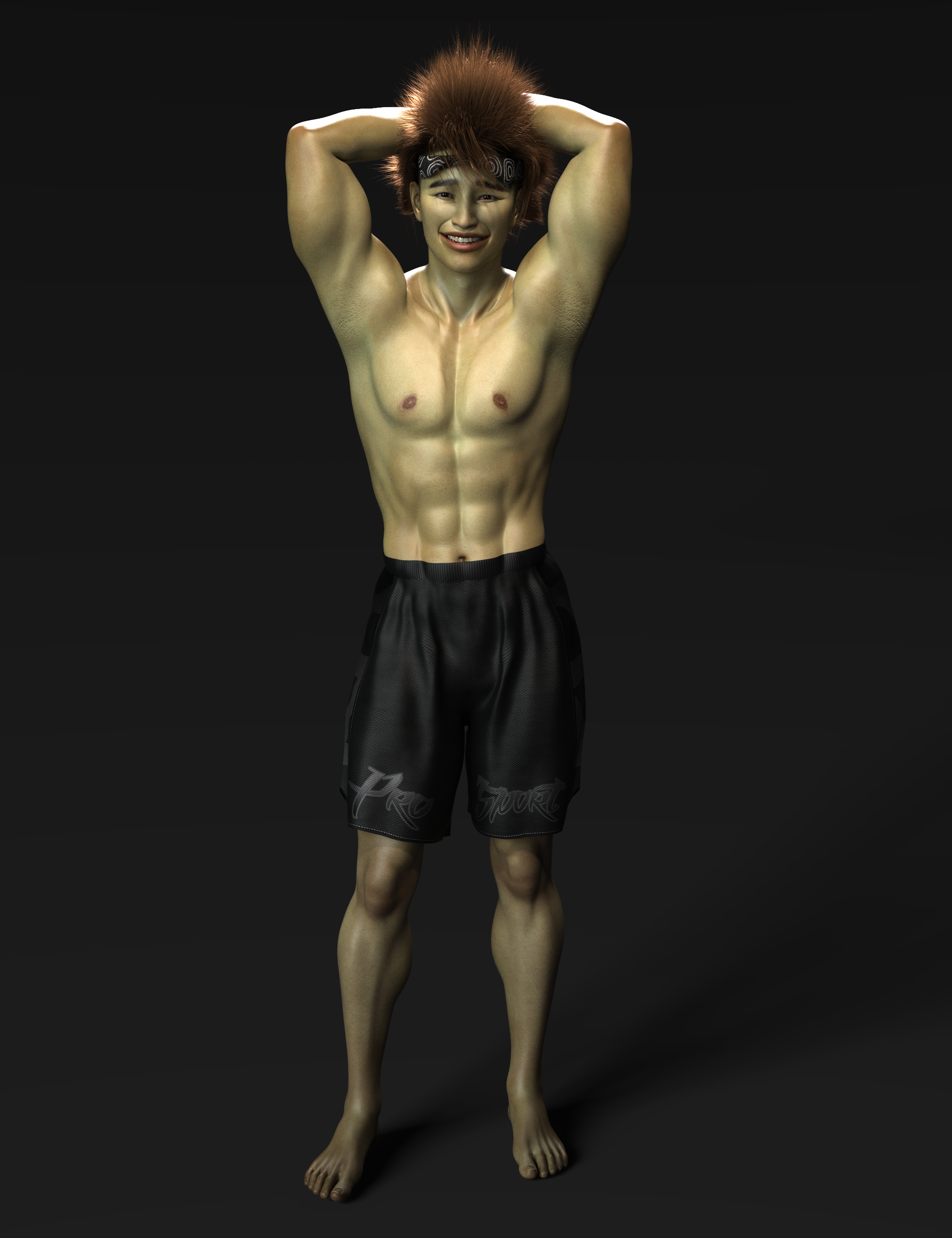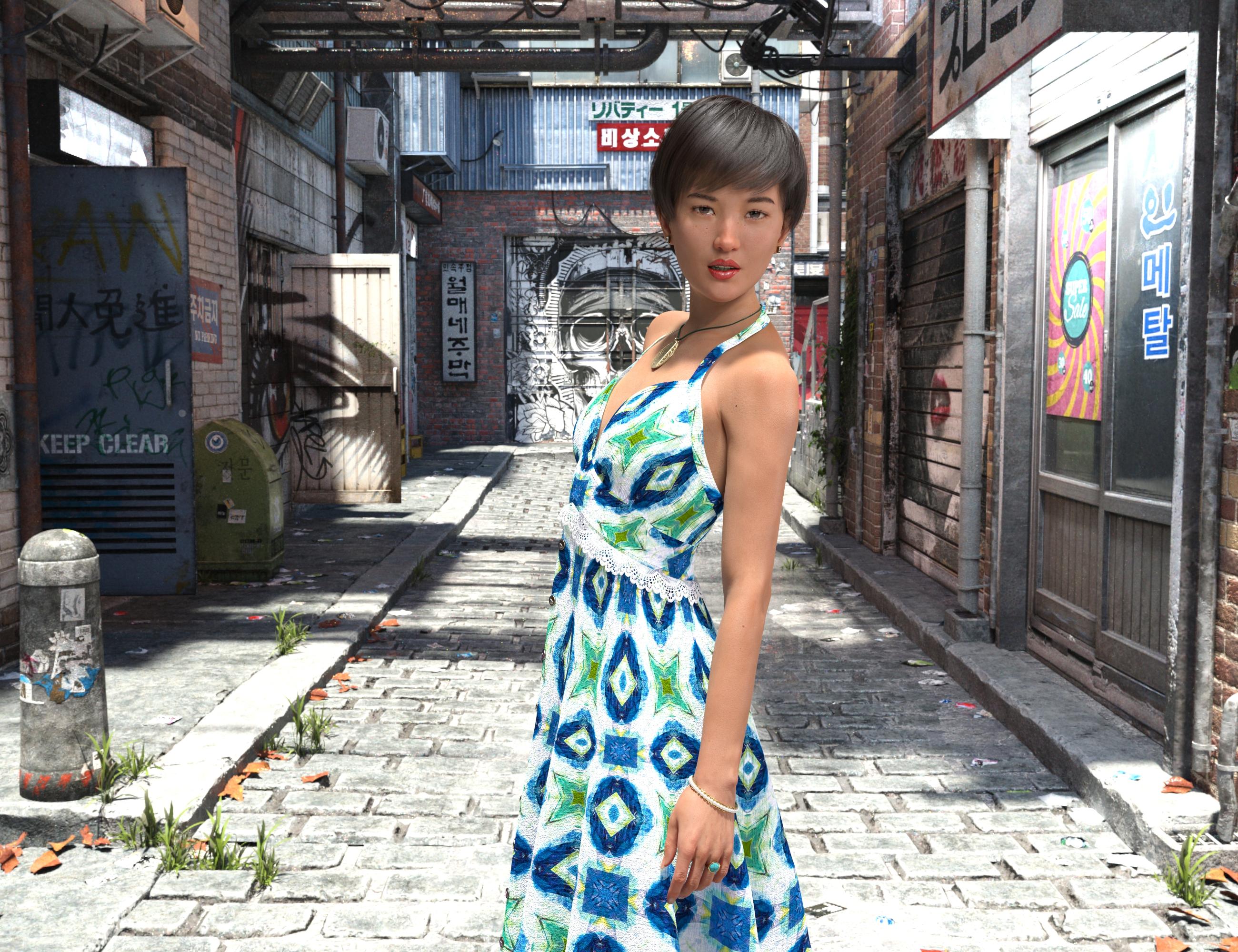 The model is DaYin Nguyen from another store but the materials are from WkD3D Ulaan from another another store because default skins on this figure are very basic. No alteration was done to the shape except for dialing in Zevo's shape enchancer and skin folds. Her shape morph is fine as is.