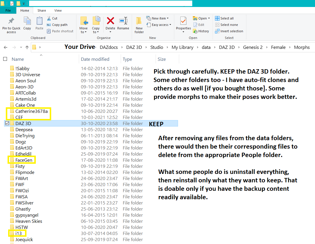 Some figures outside of the Daz 3D morphs folder are reliant on these. For example several characters are based on Victoria 6. So if keeping one of those, then Victoria 6 also should be kept.
