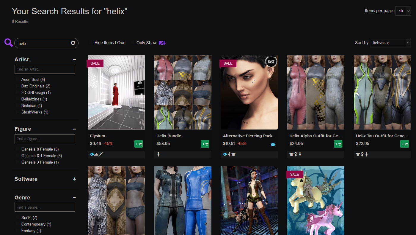 Still broken, can't search for structures, places, props, etc. I thought the filter "N/A" in figure ncolumn would do that but it doesn't. You have to wade through pages and pages of clothes, characters, poses to try find a simple environment or prop. No wonder the actual serach function in DAZ3D itself doesn't work lol.