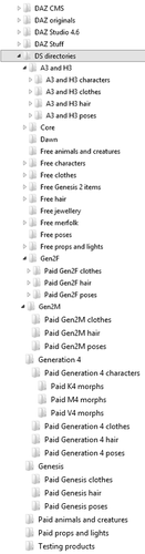 In fact, you only need the essentials and shaders. You can throw them to the same category or make separate ones. I advise you to do the latter, because as your runtime will grow, you will run into problems with finding content. This is how I sorted my items: I put all essentials as well as basic shaders and morphs into Core, because morphs are dependent on each other. Then I sort all the rest between other folders. You just need to unzip them manually.