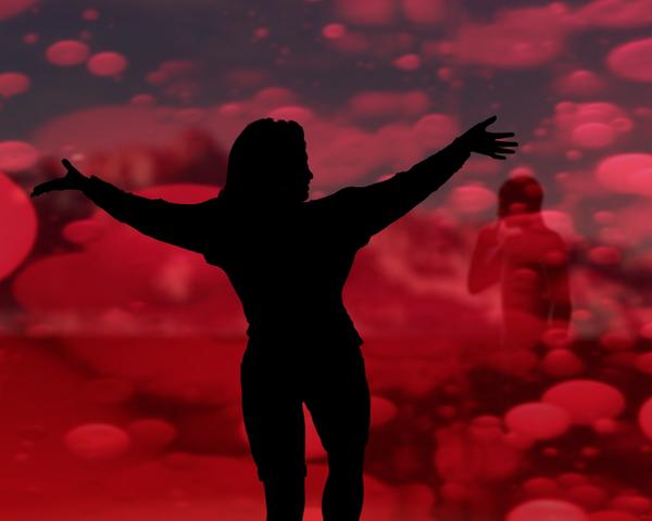 Figures on opposite sides of a lit backdrop. I had to do something different because pretty quickly, one does start to see that everyone's work in the galleries has the same downloaded stuff from the store and pretty much most of the stuff here in the gallery is the same stuff remixed this way or that. One can start to know what to expect...