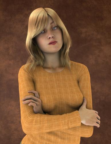 Posed after a picture of Margarita Terekhova a Russian actor from the past. I am getting to the point where I need to learn a thing or two about modeling hair as many of the products in the DAZ3Dshop won't morph how I like them to.