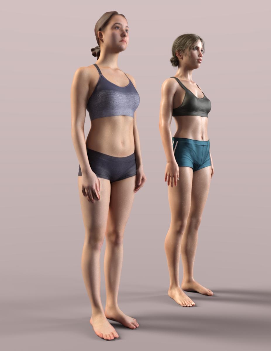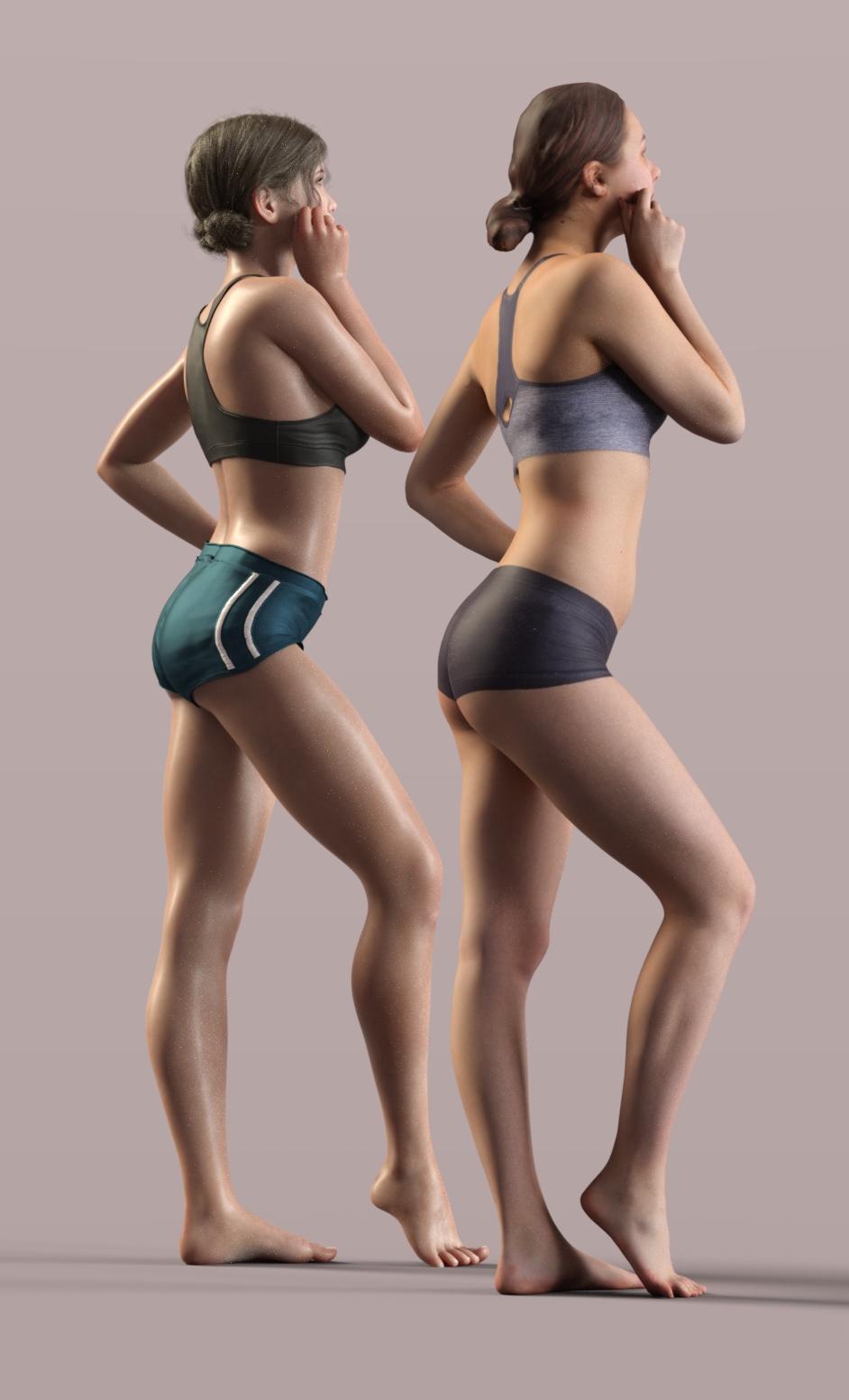 A few renders comparing a 3D figure scan with the Genesis8 figure. I tried to choose a similar outfit for comparison.