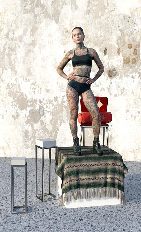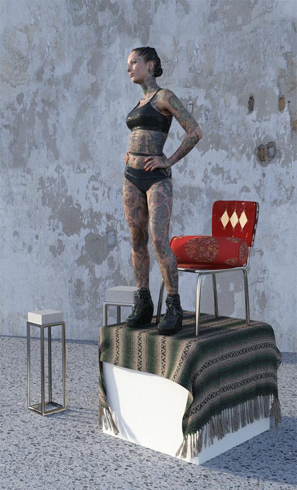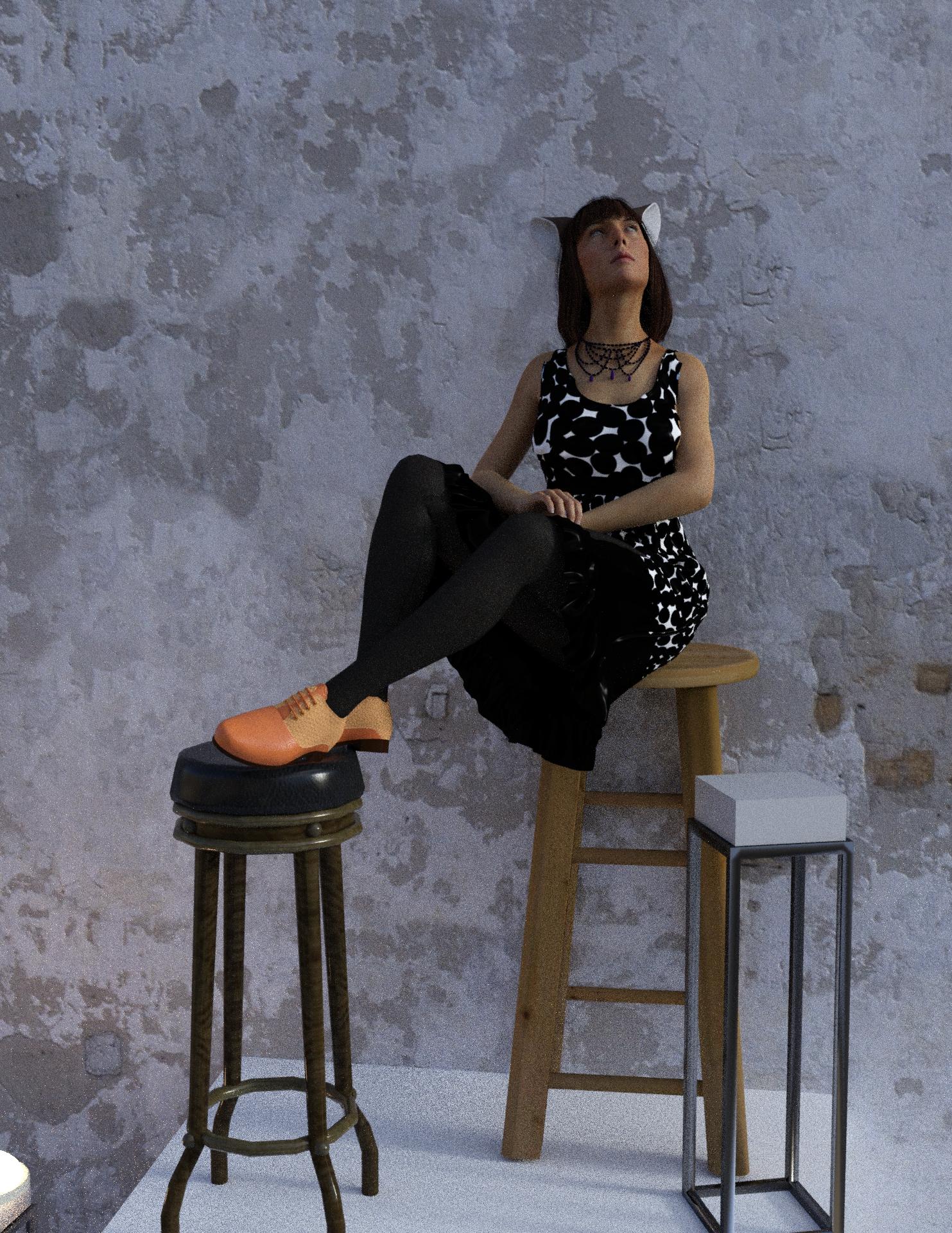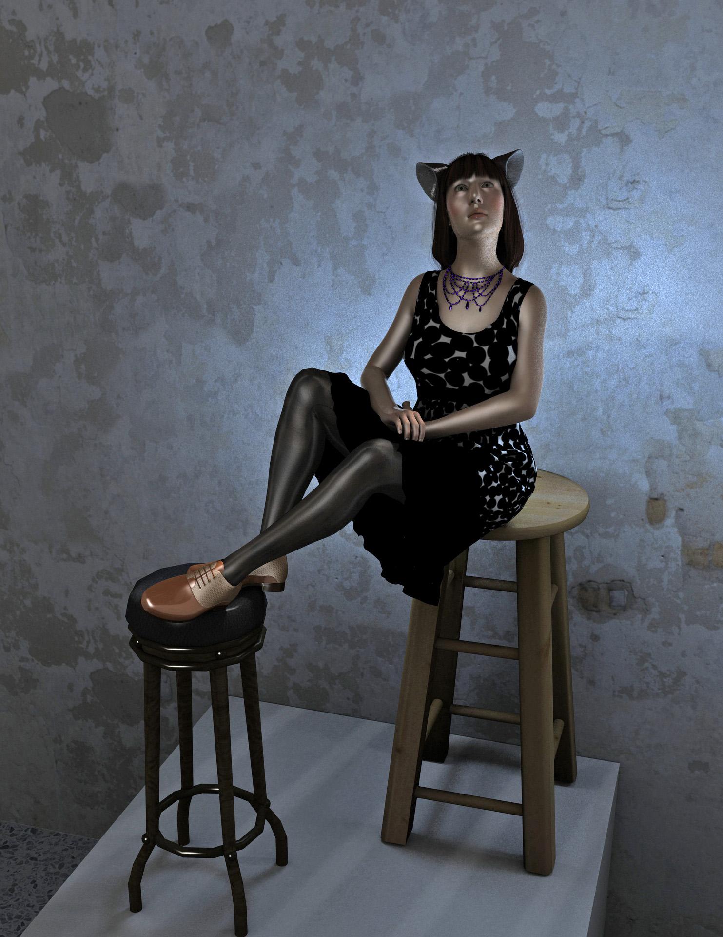 @Saphirewild Thank you very much. Here is one where some of the other pieces that I have assembled come together. I think the chair is a little small and that it should be scaled up... or maybe the heeight of her heels is what is throwing my perspective on it off.