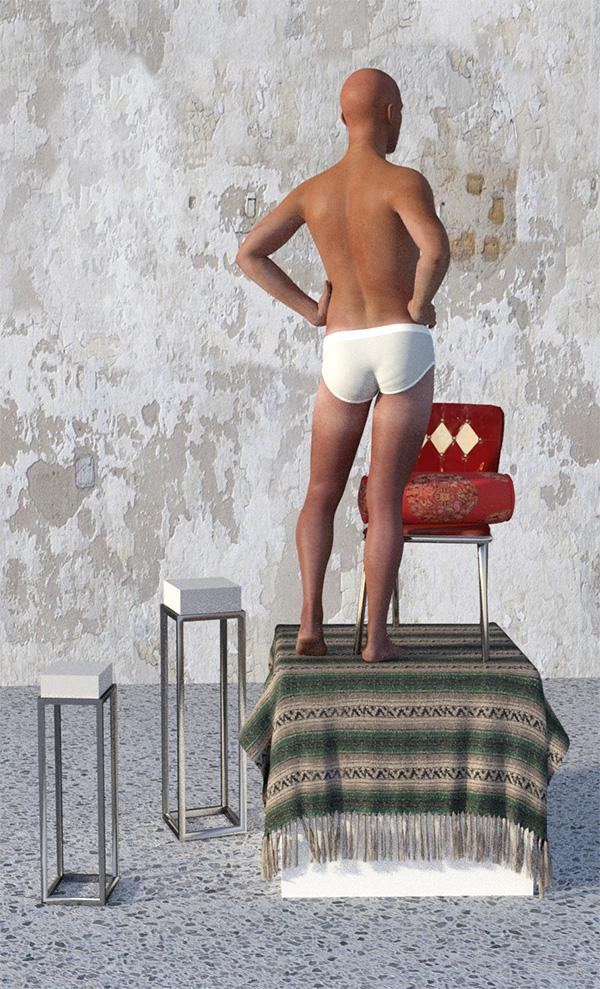 Here in s a quick throw-down rough draft based on a drawing session with a model from last night. One of Wilmap’s G3F dresses adapted well to the task, plus a freebie blue topped stool. The other stool is way oversized here but it was just cobbled together with some speed.