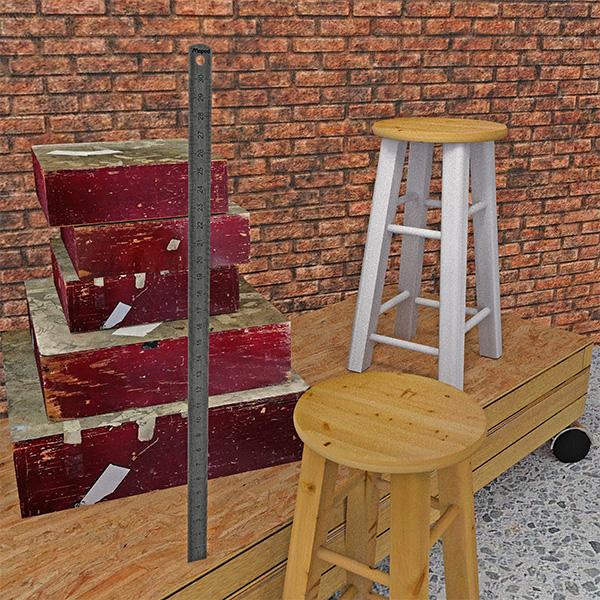 I have set up enough props that I am getting them scaled up properly. I bought this Stainless steel ruler from Turbosquid. I scaled it to relate basically that 12 inches was the length of the G2M foot when loaded up by default. So, the other props are scaled up proportional to that. I don't know otherwise how to take accurate measurements in Daz Studio as to scale in inches versus percents.