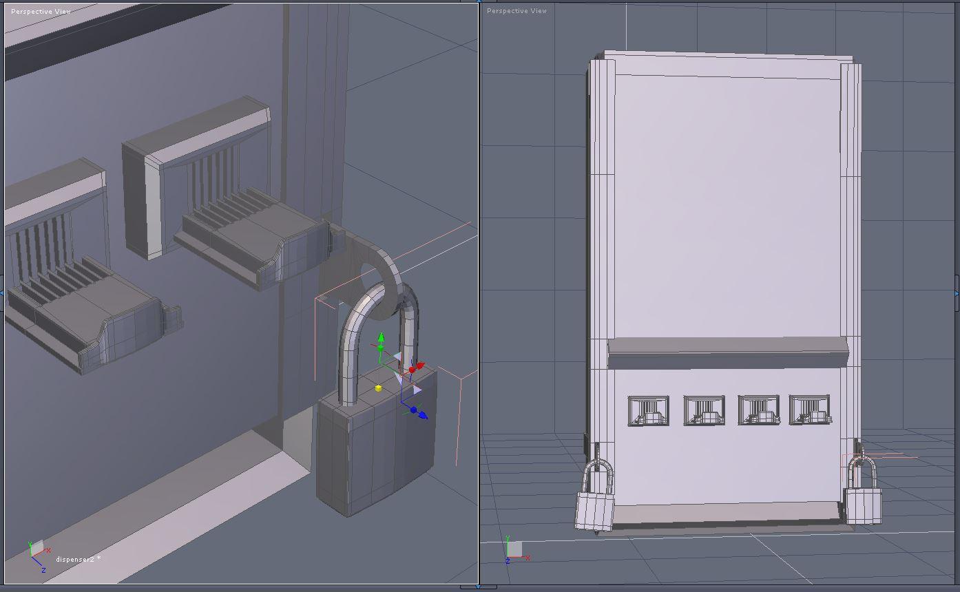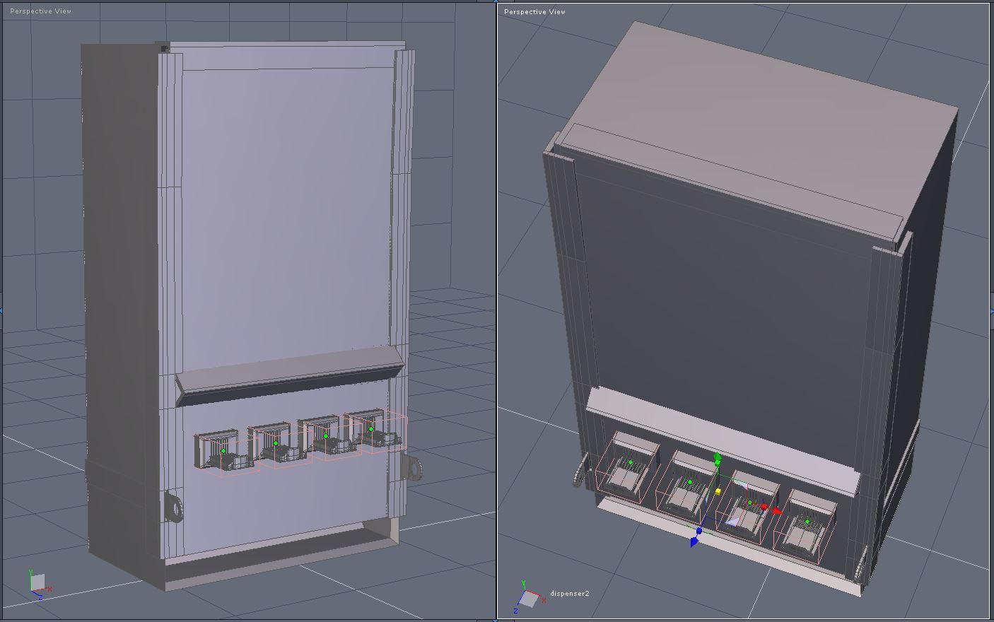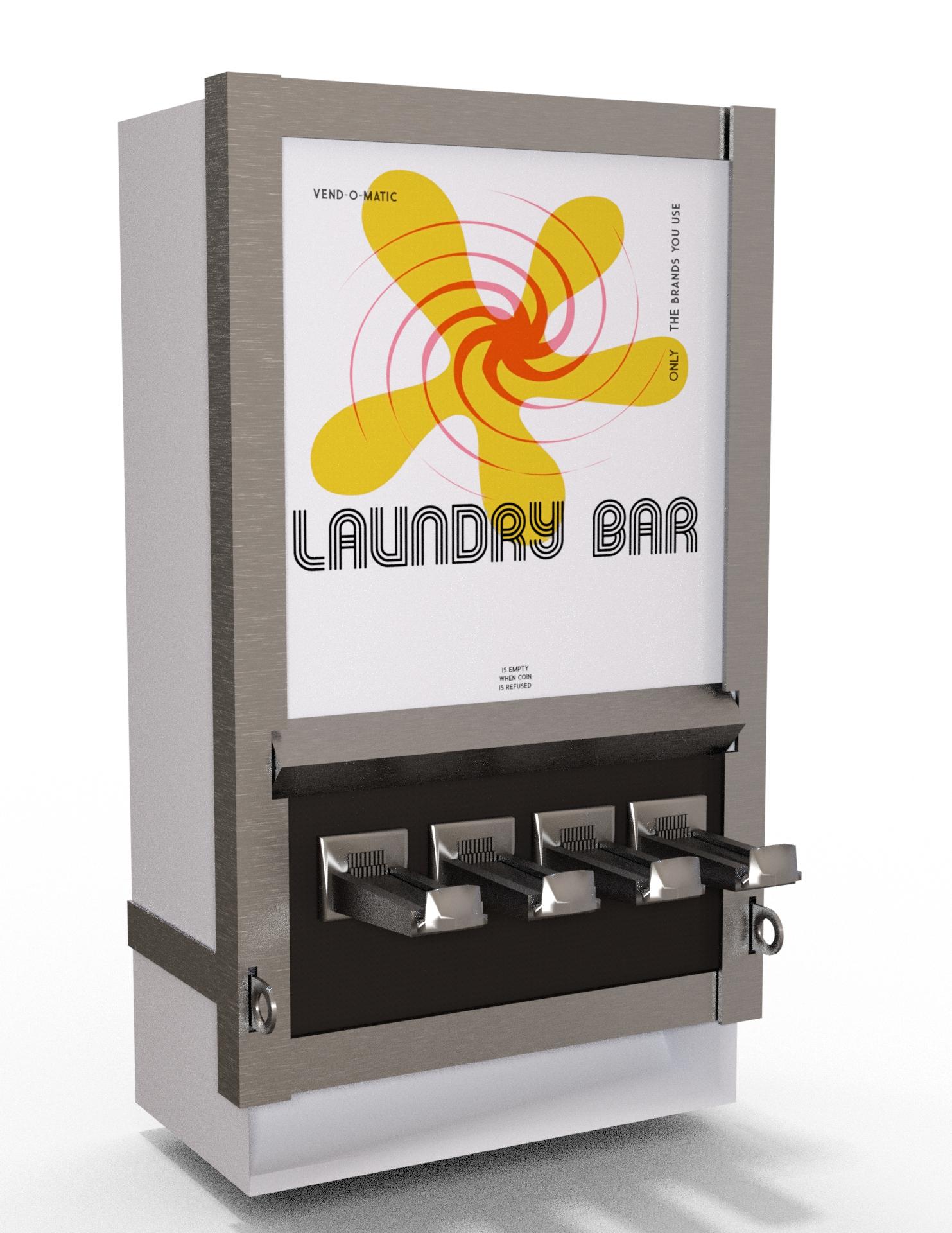 Here is the soap dispenser with procedural textures. I also changed up the branding a bit. I want to do some grit and texture on the metal, but I have to research that a bit to come up sith some good bump and roughness maps. Also, I have to come up with some fake detergent brands to put above each coin accepter.
