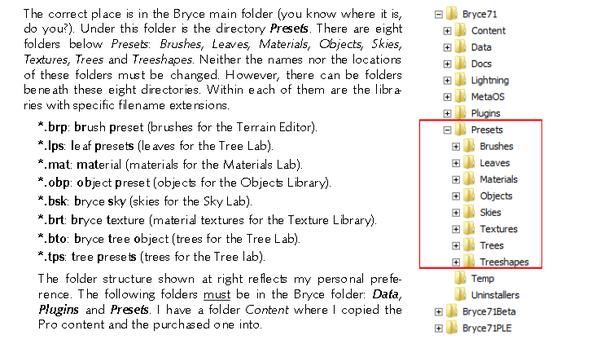 As regards Bryce Please do note that Bryce is very particular as to where it's content is installed and those parts of the content that are needed within Bryce do need to be installed very carefully, as per this extract from the doc by Horo that Sean has mentioned.