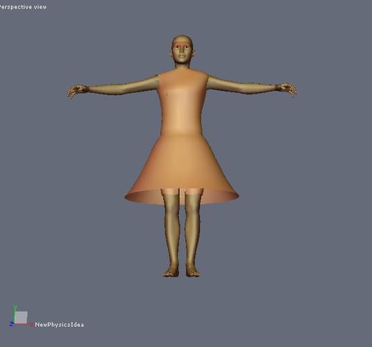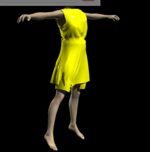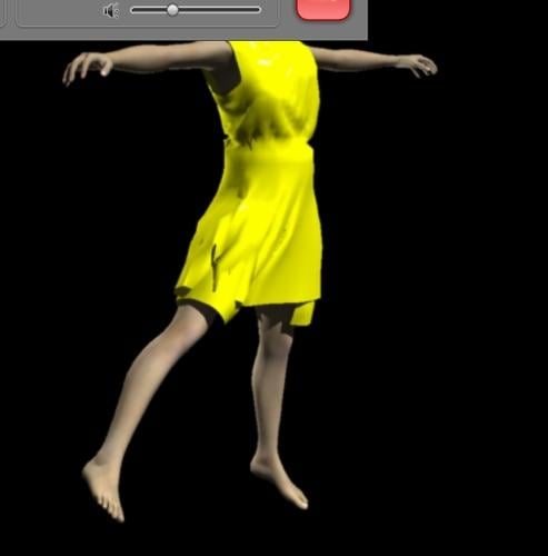 The thighs were soft-body attached to each of the figures thighs and the flat plane draped over them during the simulation. The great news is that, when the legs moved, they didn't pass through the dress. Neither did they tangle it up.
