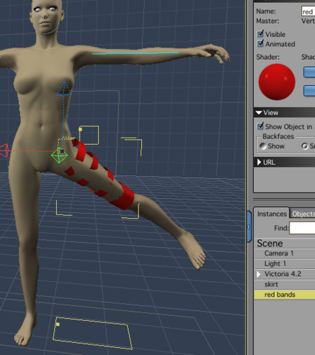 The whole notion of attaching shells to limbs was one I borrowed from Iclone's physics. Some of my findings about this technique were never shown on the forum because the method I came up with was becoming more and more bizarre and I started to think more along the lines of static physics drapes being converted to morph targets. There was some scope for animating in this way but it was way too cumbersome and would have excluded leaps and twirls (and who among us doesn't leap and twirl on a daily basis?)