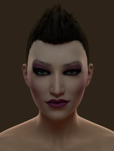 Some edits to correct bugs in hair scalp when rendered with GPU acceleration, to remove some bright red noisy pixels and finally to make her skin a little less yellow.