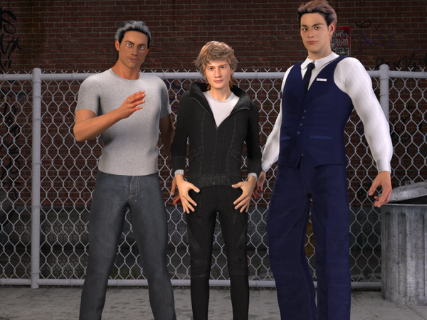 Character study. 'Tim', 'Ben', and 'Jace'. Reality 4/DS4.7. Heads all involve unique dial spinning, and I'm pretty satisfied with them. A standard three-point light rig, and very little texture fixing (shoulda turned the fence to aluminum). Tim's eyes took the most work. Eyes that are grey in DS seemed to become quite dark in Reality/Lux, but I found one that worked OK (and indeed, I had to darken it a bit with a top coat on the iris).
