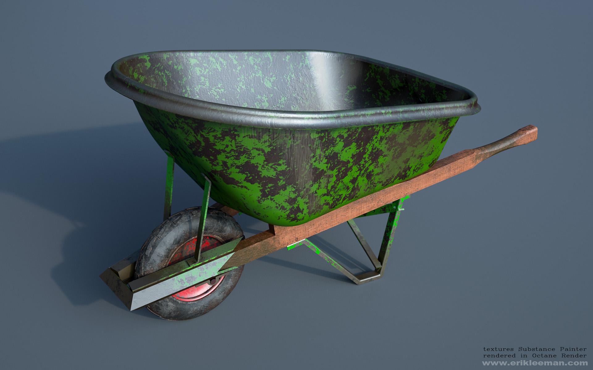 @erik, those look great. Nice start.we would be interested in more detail about your workflow. I have a few observations for the wheelbarrow I would also add paint to the wooden portion below the bucket. On the shotgun i'd add a ware line on the wooden pump where the users hands would occasionally slide along the wood. Since you have Substance Painter it may not be hard to do so.