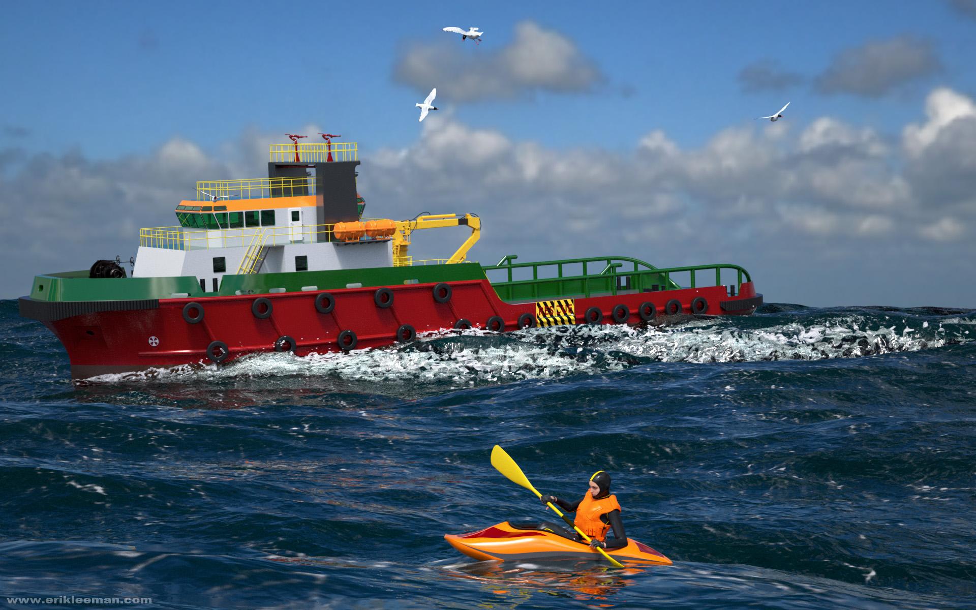 Here's a render of some converted CAD files from GRABCAD in a sea I made in Blender, and of course Victoria in a thigh-fitting wetsuit.