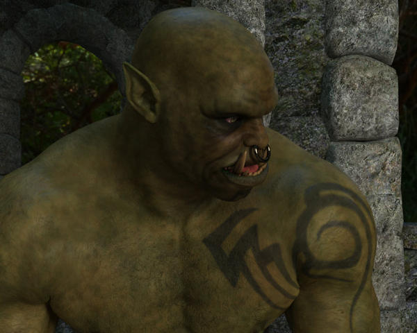 While I'm here, here is a close up from a scene I was working on, featuring RawArt's Ogora the Orc. I had to modify the SSS colours for this as the default produces bright red ears and a yellowish-brown body on the green skin option. I don't think I'll finish the full scene as I couldn't get it to work and I am now thoroughly bored with it.