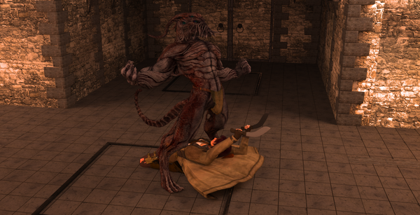 Speaking of low light images, the attached image is a cropped portion of the full image that can be seen in my Rendo gallery. I can't post it here, due to nudity, but this is an image that I think the nudity enhances the mood and atmosphere of the image (full image here: http://www.renderosity.com/mod/gallery/index.php?image_id=2558952 ). To get the background portions of the room to clear of firefly's I turned the light sconces in the room model to very very low intensity mesh lights. Other than the sconces, the only lighting in the scene is the sunlight coming through the window.