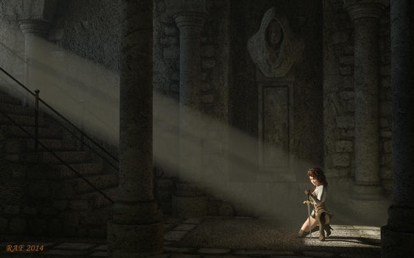 Octane definitely does extremely well with low lighting. With this image I was just testing volumetrics in Octane. The only lighting is the Octane sun environment with the sun shining through the doorway (plus the environment light coming through the other three doorways), and one very low intensity mesh light to help give just a bit more illumination on the backs of the columns.