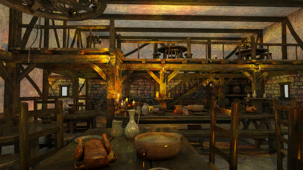 lighting was a no bainer, whack a textured flame emitter shader on all the candle flames and fireplace fires!!!