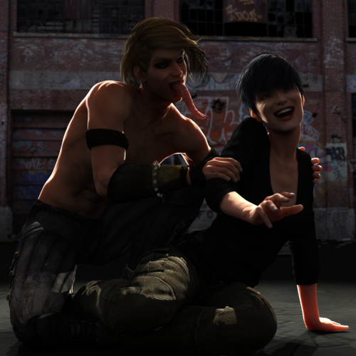 used Daz 4.6; tongue control, girl 6 wearing g2f mikaella galaxy skin texture & g2m short swords split sword; post in PSP 16