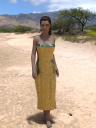 I used this to 1) learn UV mapping and 2) learn creating clothing in Daz Studio. It's pretty rough and the geometry is a bit wonky, but it has 9 different textures which are suitable for walking on a beach - who doesn't want to wear a glitter dress on the beach? Think of how many people you could blind! (Close up attached)