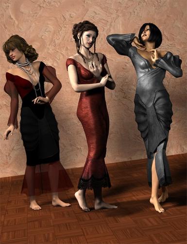 - Must be familiar with the process of importing a mesh into DS, conforming it to a figure and saving it as a .duf file, that includes a bit of weight smoothing and creating FBMs for every morph you want to use the dress with.