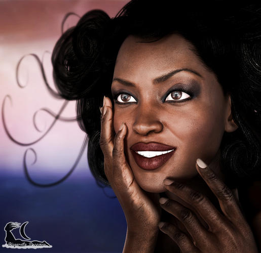 Best black hair I've ever seen rendered, it looks completely real even though it's green. The texture on it is perfect for straightened hair and the style is plausible.. looks like you could reach into the picture and brush it. Really amazing.