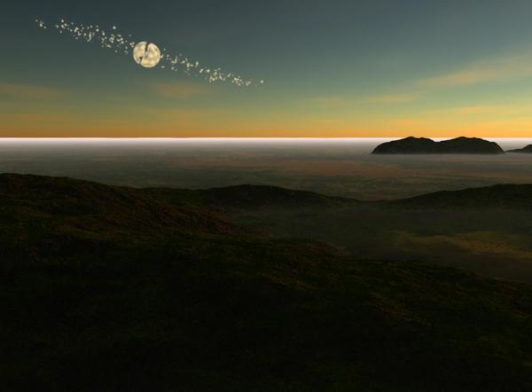 This solves a problem I'd been fiddling with for the last week - I had a "broken" moon I wanted to put in the sky and I couldn't figure it out. Here's a couple test renders I just did using your technique. In the second one I turned down the brightness on the backdrop to make it look a little more faded as the sun rose. I'll have to play with this some more, but I think it will work perfectly for what I want to do.