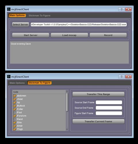 Thanks Casual, for taking the time to respond to my comments. I also see, what appears to be, an invitation for me (or someone) to step up to the plate and do the job of building a client/server system for Kinect v2 ourselves. Thanks for the implied complement but I am, pretty much, a Hobbyist, not a developer. I think developers like you might have a misconception of what the market is for Poser and Daz3D. Speaking for myself, we are not looking to record or play motion files but to move our own figures around on the display as a direct response to the data from the Kinect V2, eg: Augmented Reality. The finished product would be like a virtual mirror with the ability to see oneself on a display just like you would with an optical mirror but with the option of substituting the mirror image with our poser or daz figure(s).