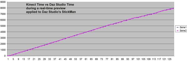 the poses are applied to the stickman in Daz Studio's scene almost immediately after being produced by the kinect
