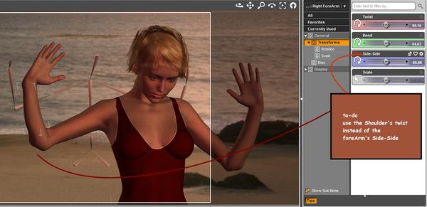fig 4 - not quite there but close, the foreArm's side-side angle is zeroed, so at least the elbo is not all messed up, but the elbow and hand rotation is modified