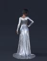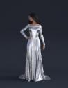 A long A-cut elegant dress with en elongated trail, a matching belt and shoes:
