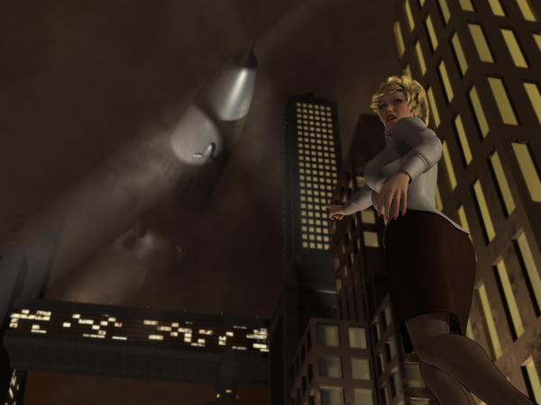 I played around with focus on the picture I did with the dirigible. One version, I went with the focus on the woman on the street, and another with the dirigible. I ended up liking the the focus on the dirigible because I decided that was the thing I wanted the viewer to really see. (Could be a bit of vanity on my part because I was really happy with the shader driven ribbing on the Dirigible's skin.)