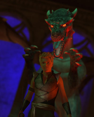 You might try switching the focus to the human character & have the dragon be blurred. I think it would give more impact.