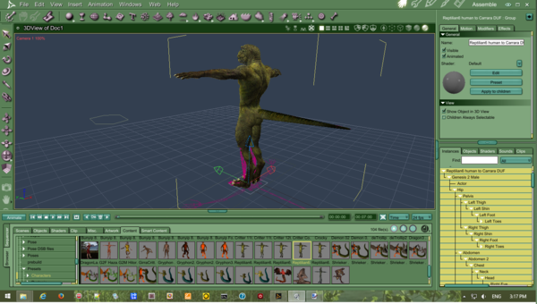 5. Open up Carrara, find Reptilian 6 Human and open into scene.