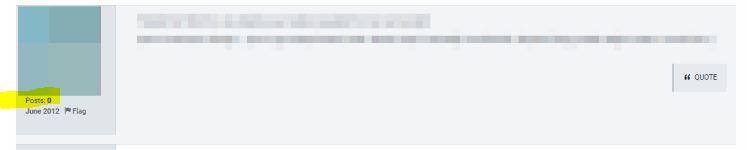 I have obscured actual user details except the 0 post count. Seemed curious.