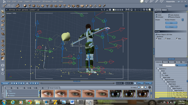 I've lost about 2 days to trying to get bot genesis to play well in Carrara. Made my warrior bot lady in Daz Studio but the mech joints fly away in Carrara. Searched the forums and re-installed bot genesis and genesis starter essentials to no avail (also reinstalled Carrara, found out I had build 204 while build 243 was the last build released for 8.5). I'm making one last try to manually move in the mech joints and see if it would play well when I pose the figure. Did some extra work playing with the genesis and bot genesis shaders to get the feel I wanted.