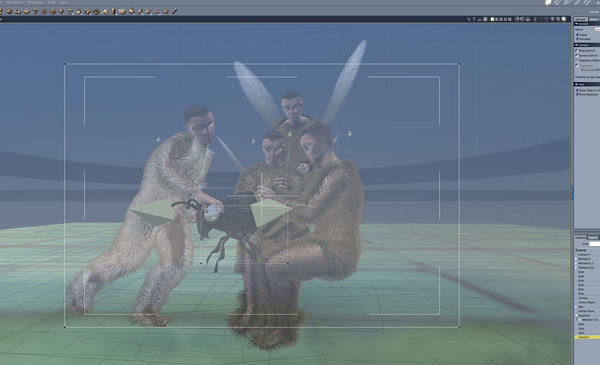 one image is the scene setup, each figure has wings but you cant see them because they are in a glass ball, and there are transparency issues. The final render looks much more cropped because of the refraction of the glass ball.