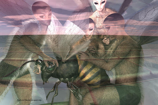 head wax - bees freak me out since a badly thrown Frisbee caused a hive to land right next to me as a kid, resulting in many. many stings. Your genetically engineered bee people are bringing it all back - I will be having art-inspired nightmares tonight ;)
